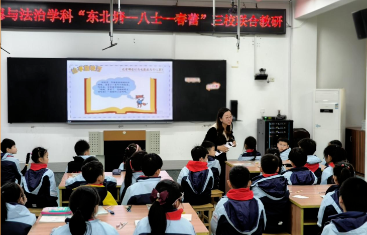 为充分发挥思政课程在落实立德树人根本任务中的关键作用,近日,无锡市东北塘实验小学联合区内八士实验小学、春蕾学校开展了道德与法治学科联合教研活动。