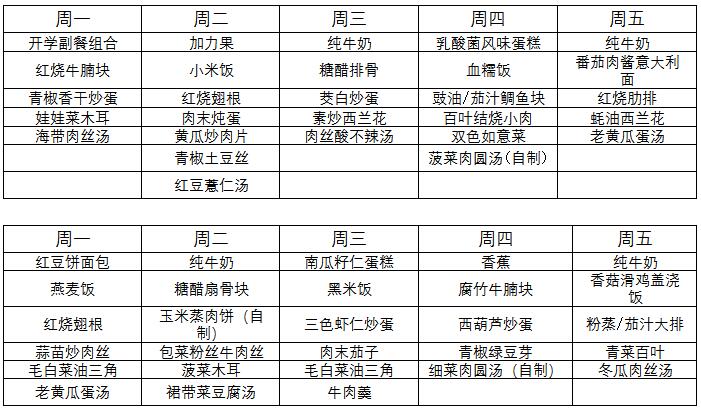 2025秋学期第一、二周学生食谱
