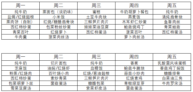 2025秋学期第十、十一周学生食谱